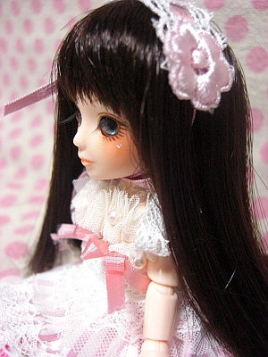 そしてメイクはピンク系の方が、服に合ってて良かったかも。次回はピンク系にしよう!このヘッド、鼻の形があんまり好きじゃないかも?と思ってましたが、組んでみるとリアルドールっぽくて結構いい気がしてきました。うん、いいかも。